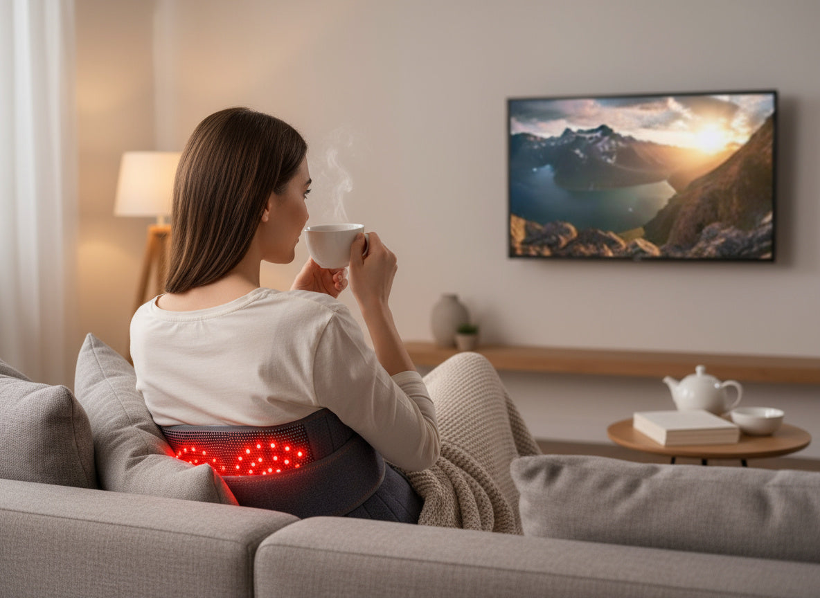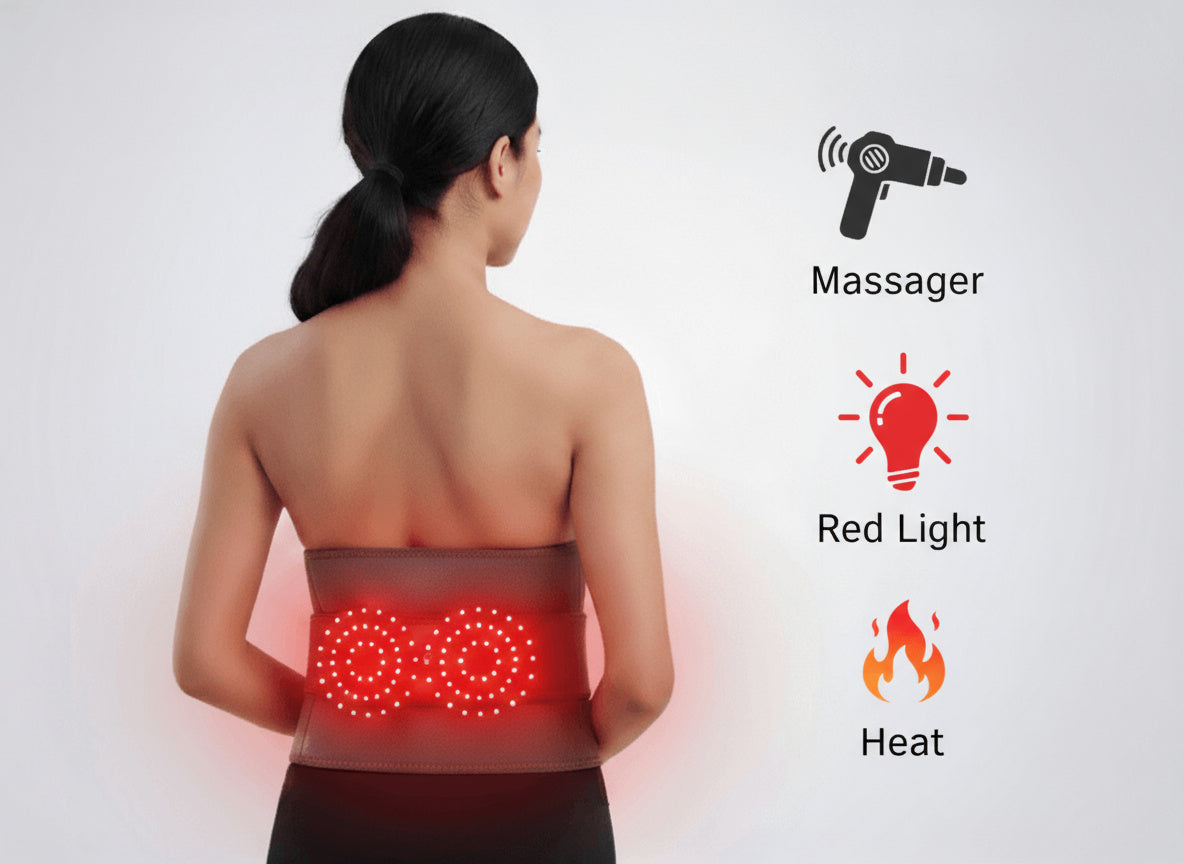Most belts only heat or vibrate — TheraBand™ adds red light, massage, and deep heat for complete, science-backed relief.